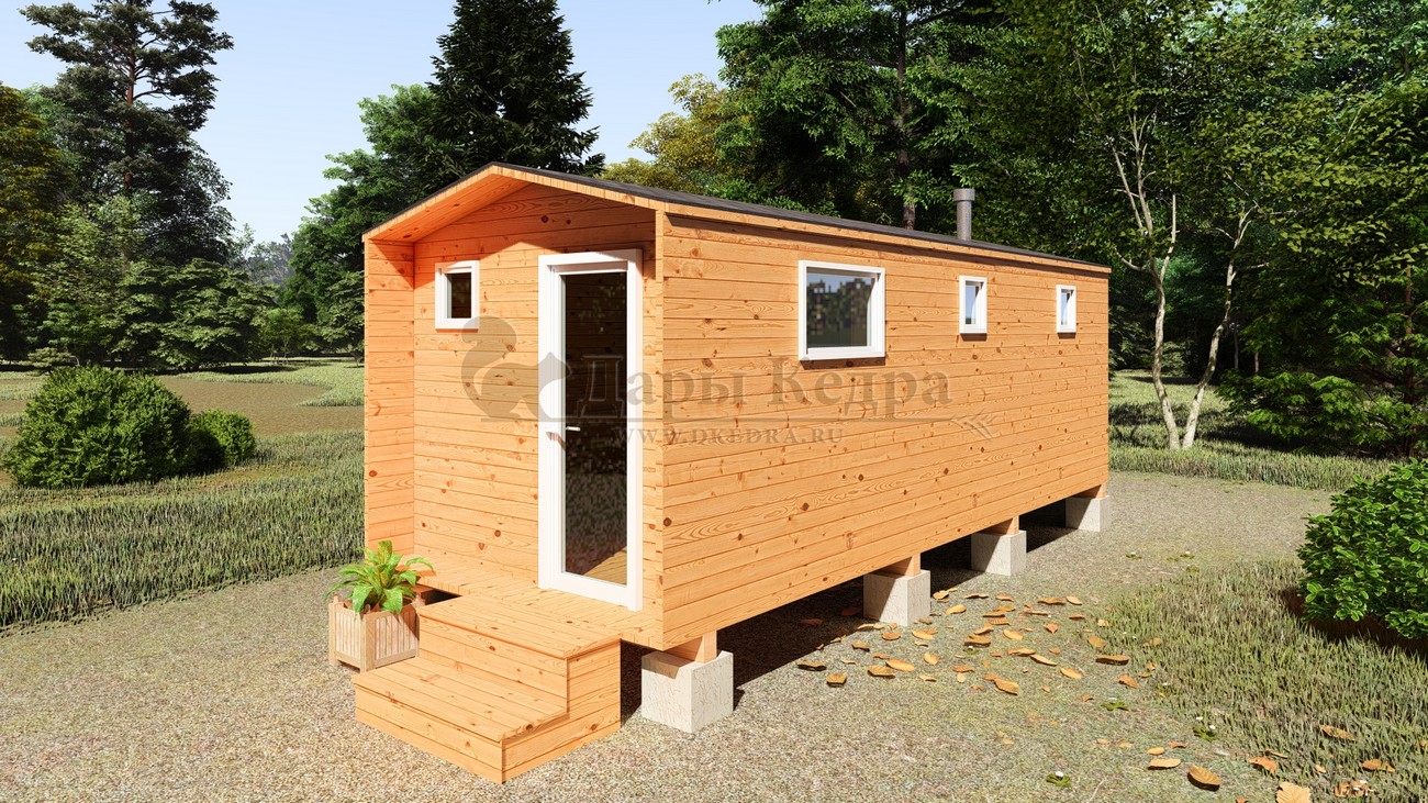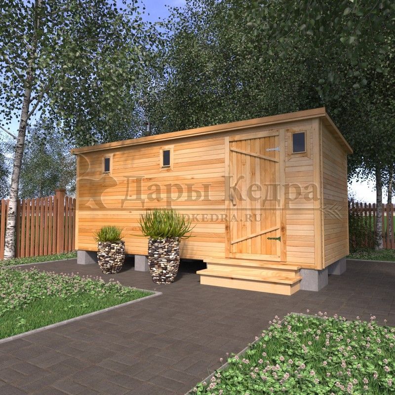 Баня-бочка квадро из кедра с верандой (все размеры) Это прямоугольное с закругленными углами. За счет такой конструкции во время топки воздух циркулирует по кругу, поэтому баня-бочка нагревается не более 30 минут. На веранде можно оставить вещи или отдохнуть после процедур парения. Лавочки из кедра находятся по всей длине бани-бочки с обеих сторон. Печь расположена в парилке около дальней стены. В зависимости от выбранного размера баня-бочка квадро с верандой имеет следующую комплектацию: Баня-бочка квадро 2,5 метра - парилка; Баня-бочка квадро 3,5 и 4,5 метра - раздевалка, парилка; Баня-бочка квадро 5,5 и 6 метров - раздевалка, парилка, моечная. По вашему желанию ее можно укомплектовать печью с внешней загрузкой, благодаря которой весь мусор вовремя топки остается на улице. Баня-бочка квадро не требует полноценный фундамент, поэтому при необходимости ее можно перенести в другое место. Обращаем Ваше внимание, что в стандартную комплектацию бани входят лавки в парной с обеих сторон. Дополнительно можно заказать полок открытого или закрытого типа! Кедр обладает ароматическими свойствами. Он не деформируется и влагоустойчив, при правильном уходе за деревом на нем не развиваются грибки и плесень.