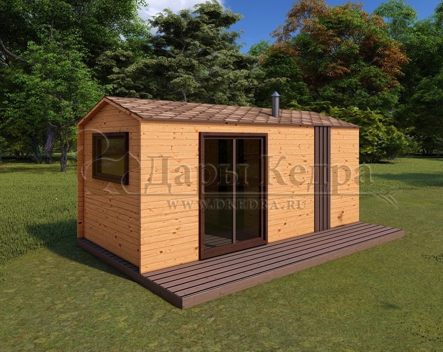 Каркасная баня Барн из кедра 4х2,2 м Каркасная баня 'Барн' из кедра длиной 4 метра – воплощение современного дизайна и функциональности. Этот компактный банный комплекс идеально впишется в ландшафт вашего участка, добавив ему элегантности и уюта. Минималистичный стиль 'барн' с его характерными чертами создает особую атмосферу, а продуманная планировка обеспечивает комфортное пребывание. Идеальное решение для тех, кто хочет получить максимум удовольствия от бани, не жертвуя пространством.