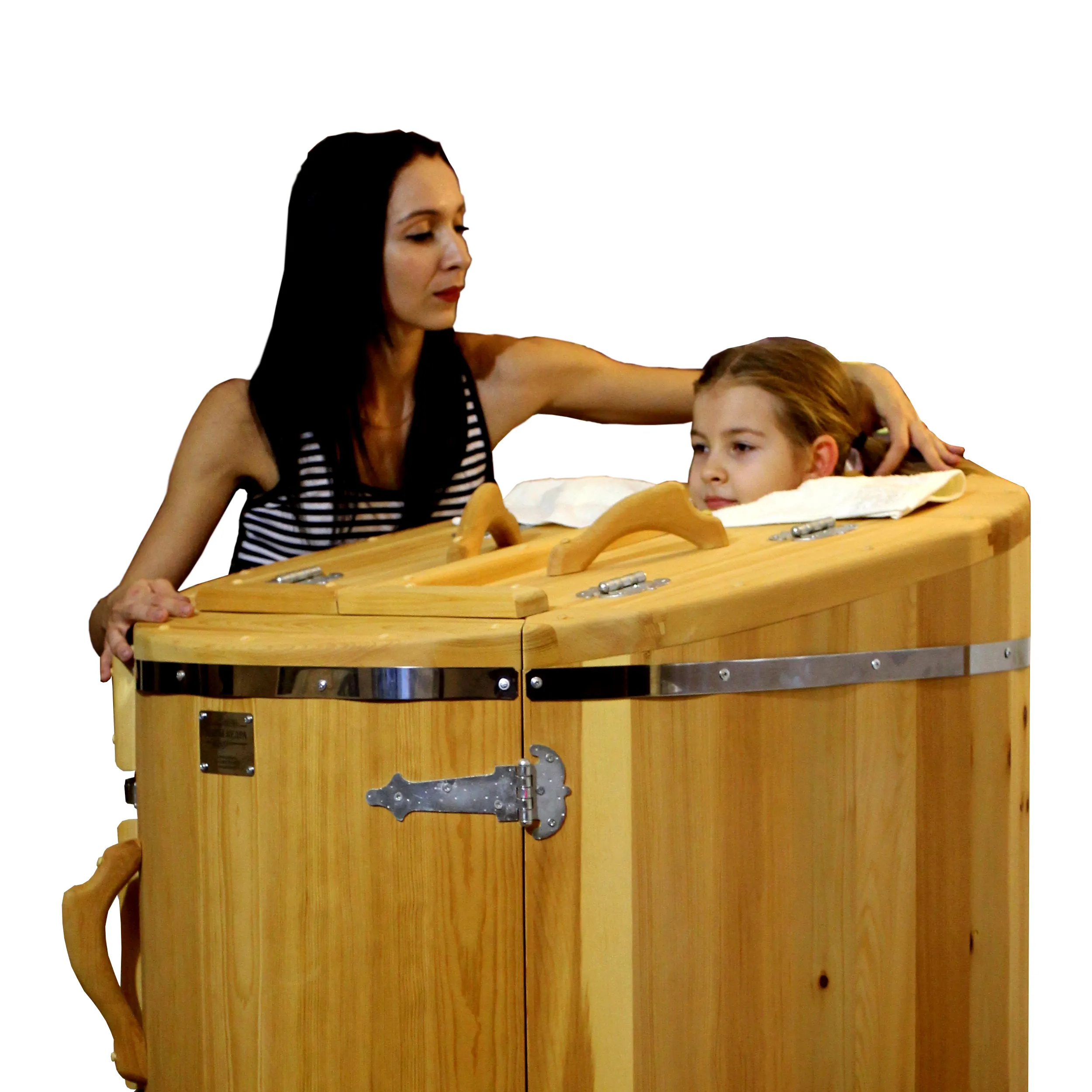 Круглая фитобочка из кедра - это мини парная, которую можно использовать не только в спа-салонах, но и дома. Такая модель наиболее компактна и мобильна. Толщина стенок составляет 25 мм. Фитобочка оборудована откидными створками, дверцей и отверстием для головы. Во время парения человек сидит внутри кедровой бочки, а голова находится снаружи. Благодаря этому исключается возможность перегрева. Подлокотники из кедра, встроенные ручки на створках и двери делают эксплуатацию более удобной.
