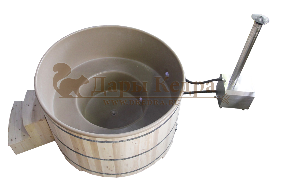Фурако круглая из кедра с литой термопластиковой вставкой с внешней печью